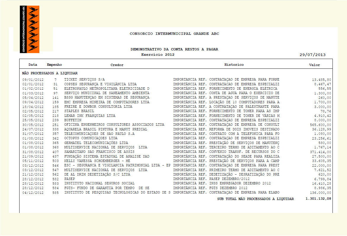 | Demonstrativo Restos a Pagar 2012 - 2012 |