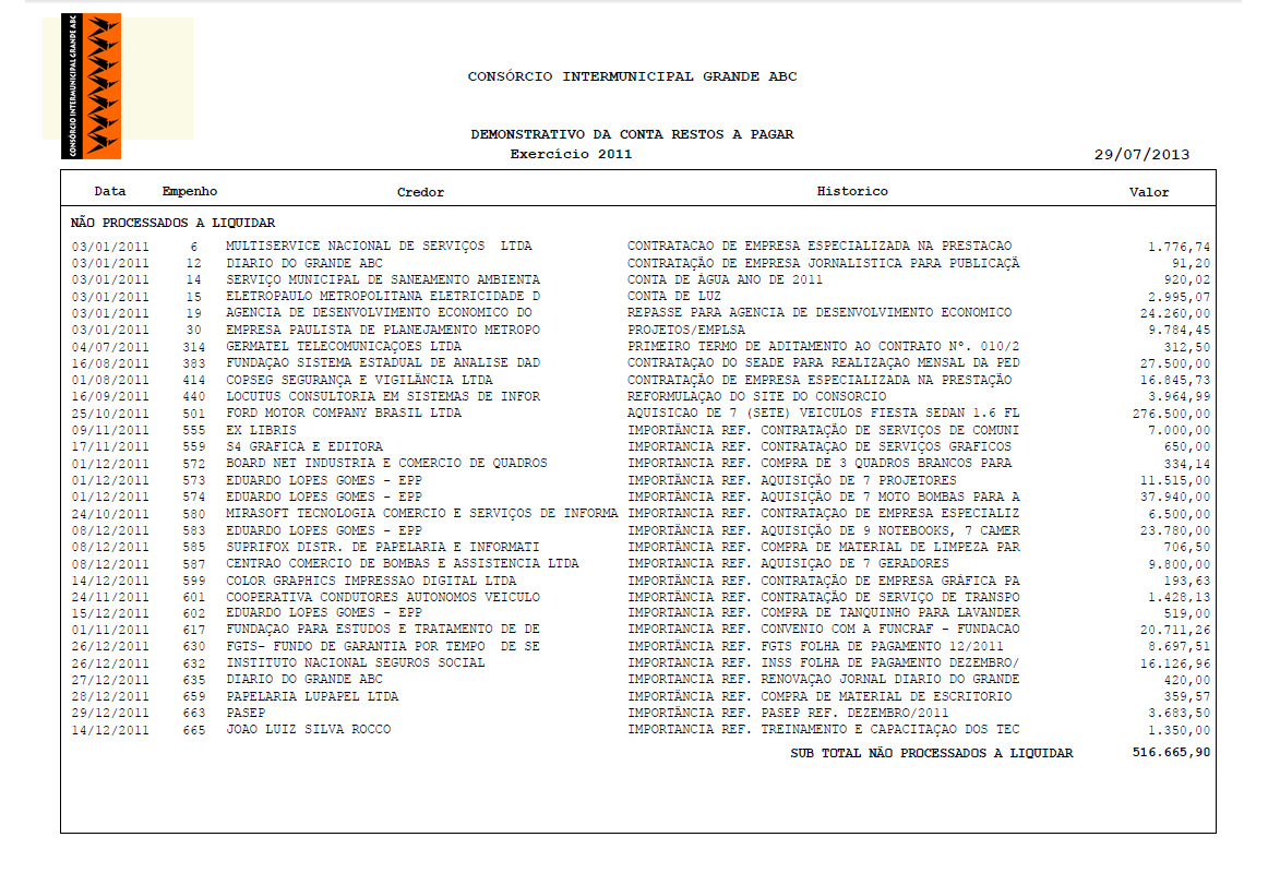 | Demonstrativo Restos a Pagar 2011 - 2011 |